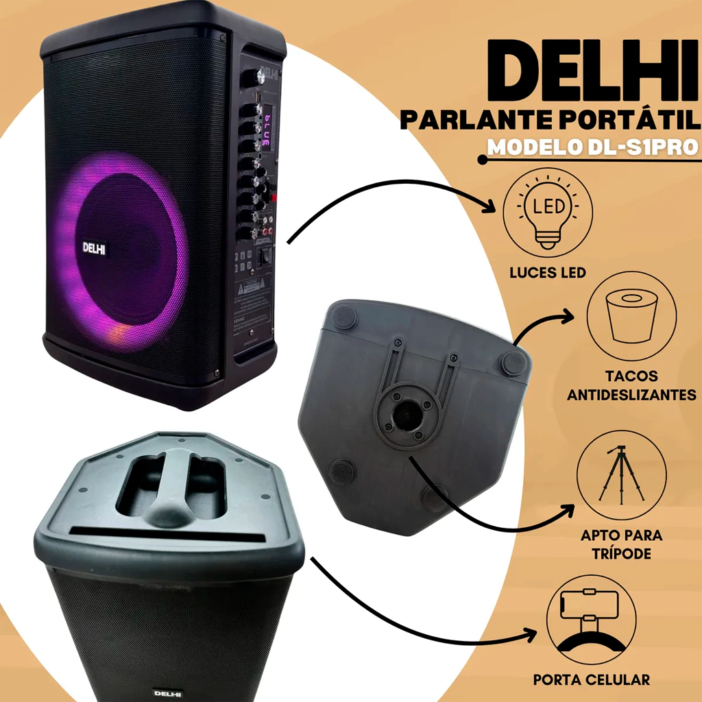 El Parlante Portátil Delhi S1 Pro combina potencia, estilo y control total en un solo equipo, ofreciendo sonido profesional y una interfaz completa para música, karaoke y presentaciones.